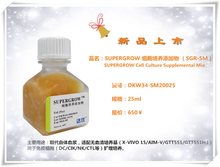 血清替代物新產(chǎn)品:SUPERGROW細(xì)胞培養(yǎng)添加物(SGR-SM)上市了!